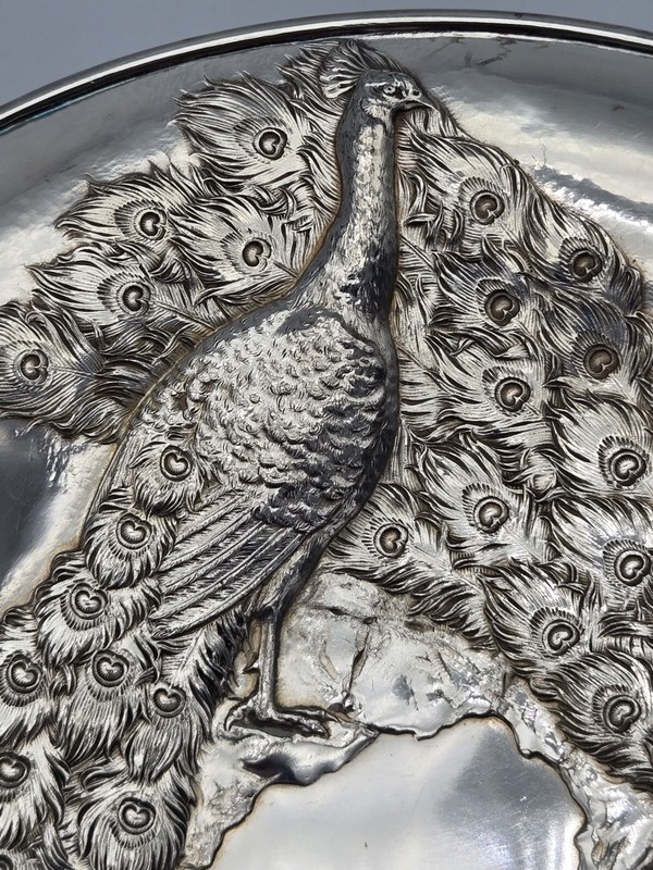 Rare James . Tufts Art Nouveau Silver Plate Peacocks Serving Tray Victorian 10