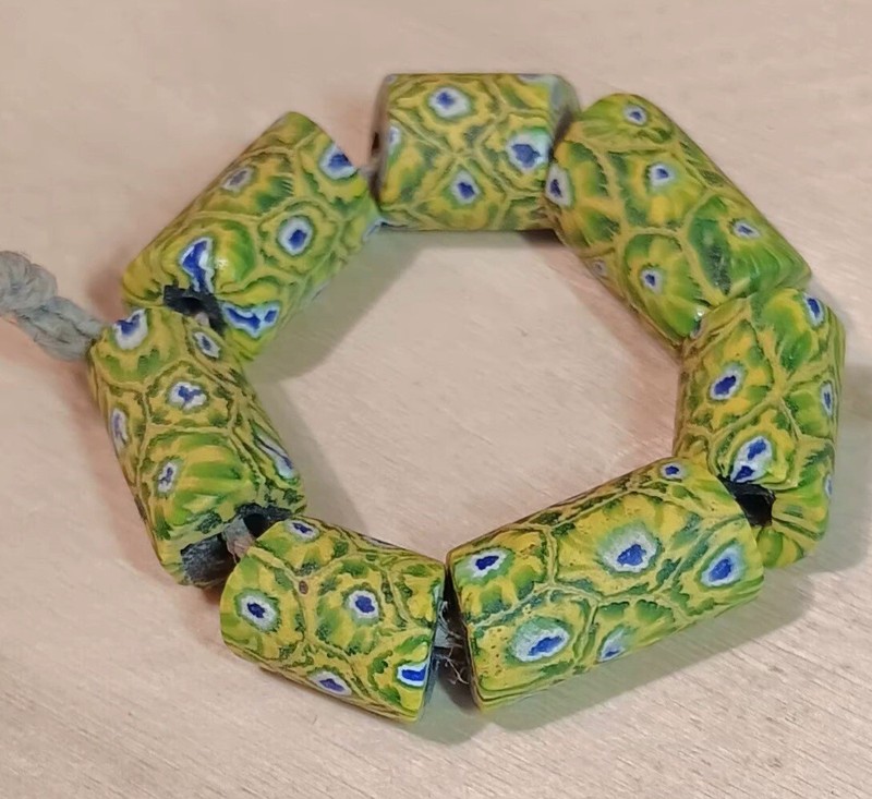 7 Venetian Trade Beads Vibrant Yellow Green Millefiori Blue Eyes African Antique