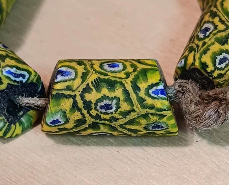 Antique Venetian 7 Trade Beads Vibrant Yellow Green Millefiori Blue Eyes African