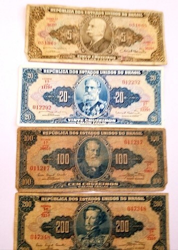 Brazil Vantage Currency Banknote Notes Lot of 4 Assorted