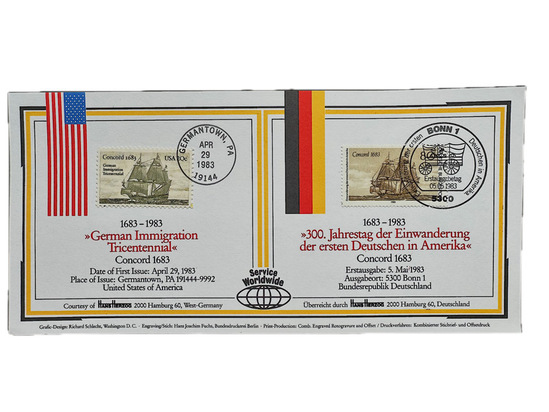 1983 German Immigration Tricentennial, USA German Artcraft Combo FDC