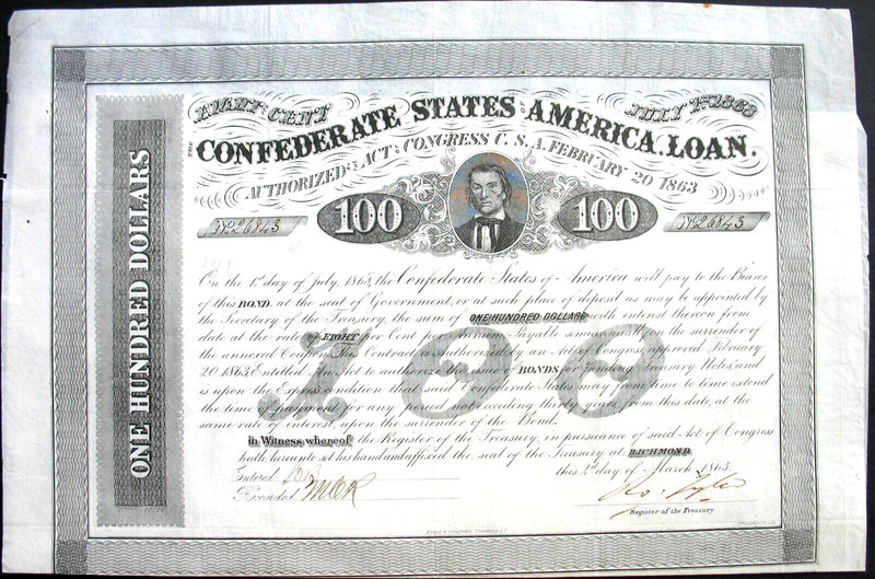Confederate States of America Loan Coup. Richmond 1863 CSA USA Stephens Tyler