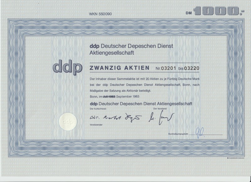 ddp Deutscher Depeschen Dienst AG 1000 DM 1983