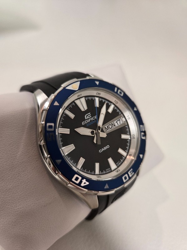 Edifice by Casio 200 Meter Classic Dive Watch. Blue Wave Dial. EFM 100 NEW!