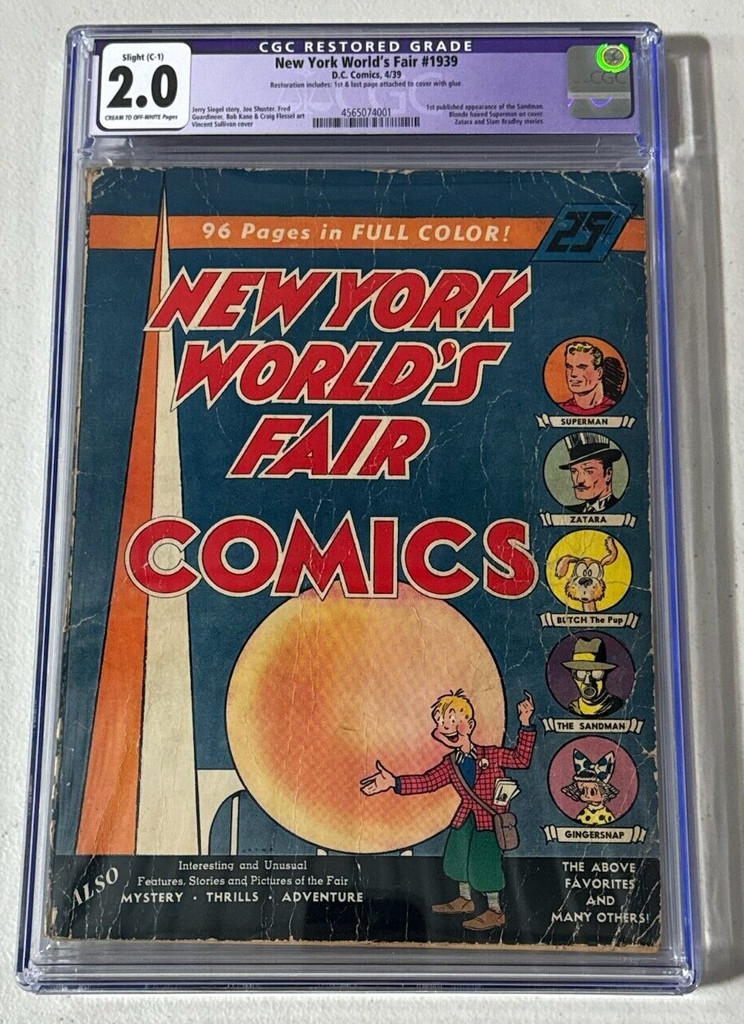 DC Comics NEW York Worlds Fair 1939 CGC 2.0 Restored 1ST Sandman Blonde Superman