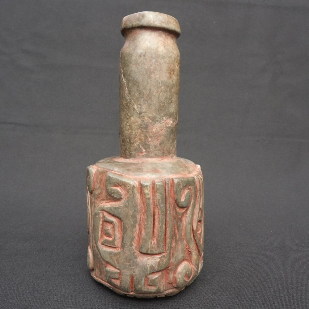 Chavin Stone Ritual Bottle With Feline Heads Hand Carved Artifact