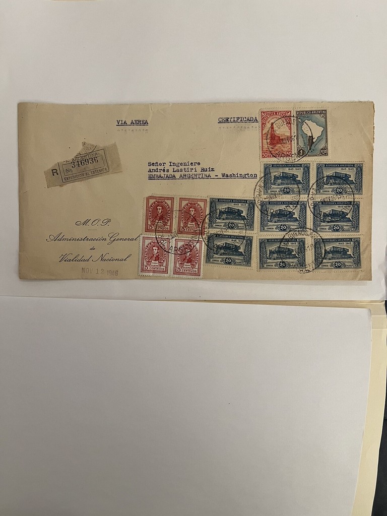 1946 Argentina Postage Stamp Stamps Roads Letter Vintage Engineer To US Embassy