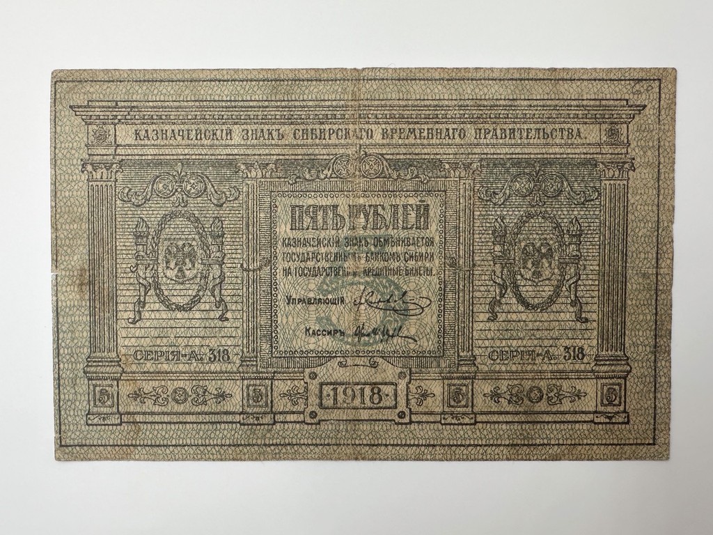 Banknote 5 Rubles 1918 Bond Vintage Treasury Note Siberia Paper Money