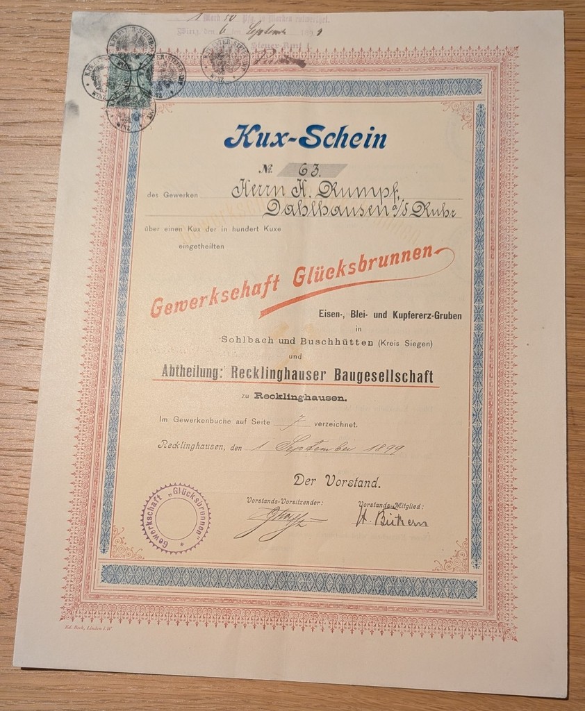 1899 Fortune Fountain Union Kux Note