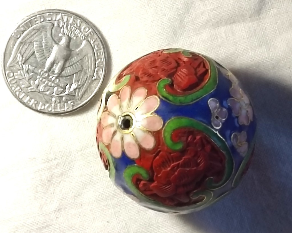 Fine Detailed Unusual Antique Chinese Cloisonne and Cinnabar Bead