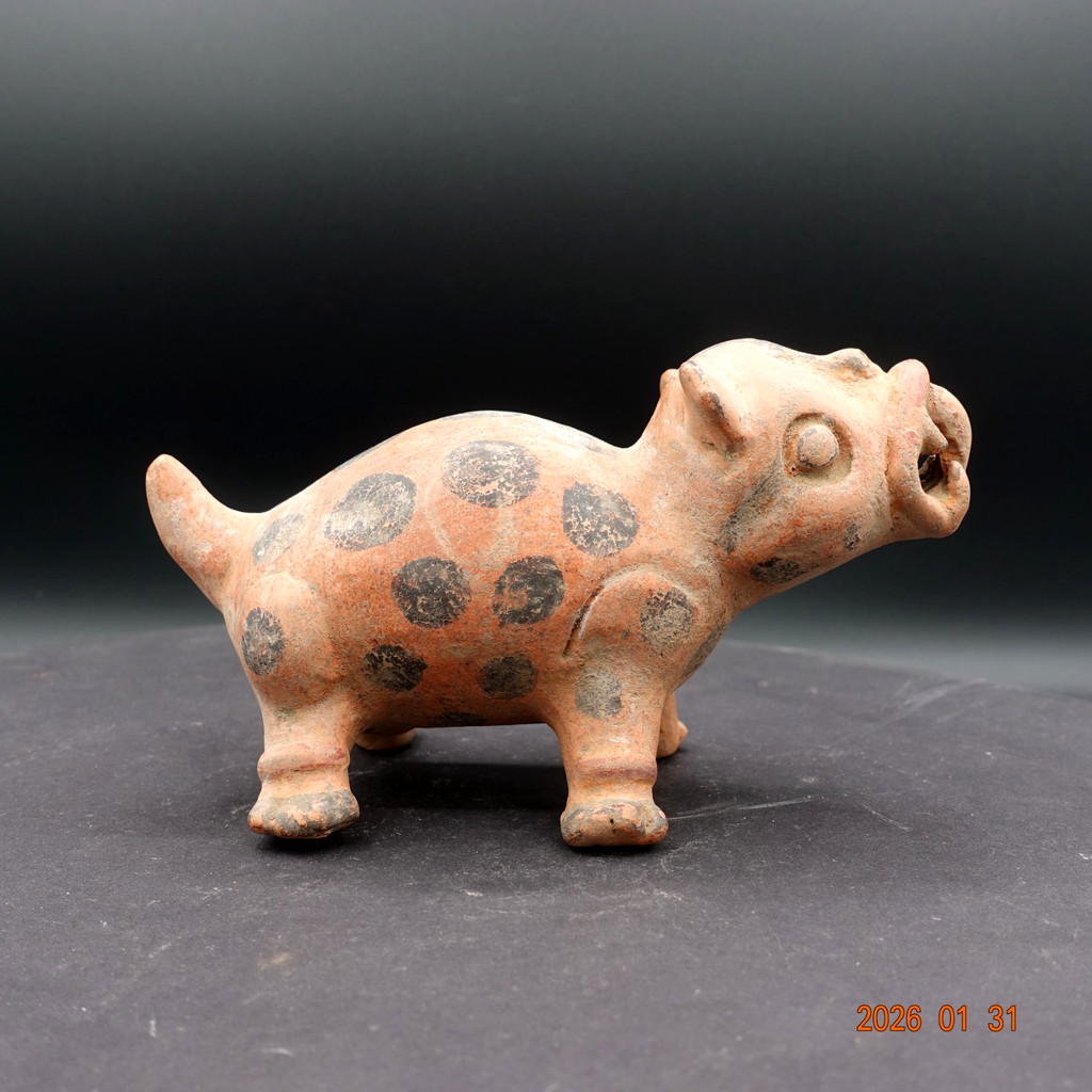 Pre Columbian Authentic Artifact Ceramic Pottery Bi Chrome, Jaguar Effigy