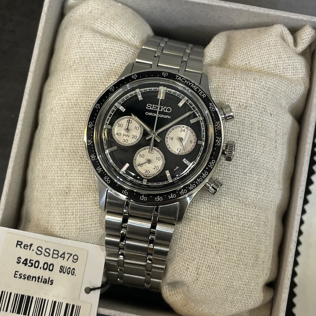 Seiko Ssb479 Essentials Panda Black Chronograph Quartz Men Watch 38.7mm NEW