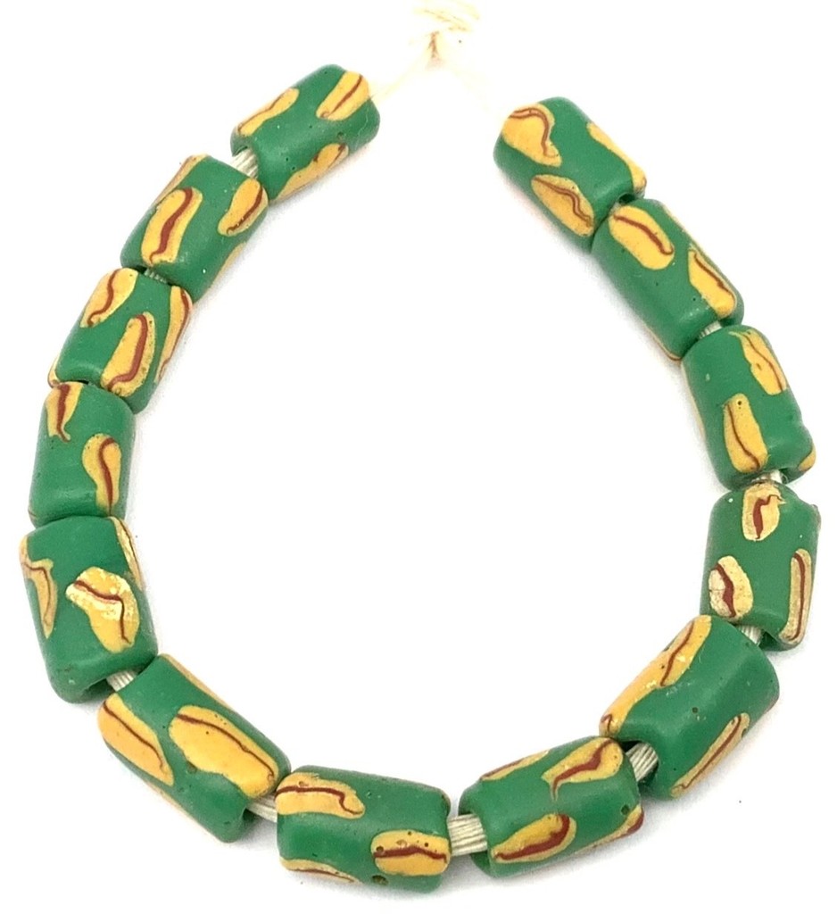 13 Rare Venetian Antique Green Wound African Glass Trade Beads-#15511