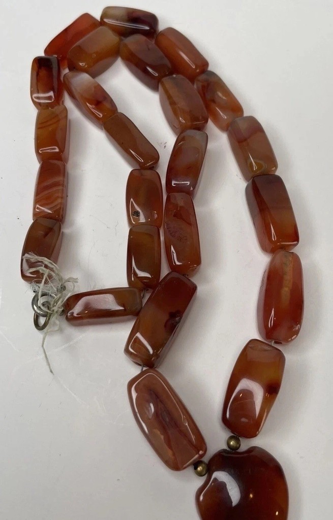 Vintage Himalayan Tibetan Carnelian Carved Agate Beads Necklace Rare