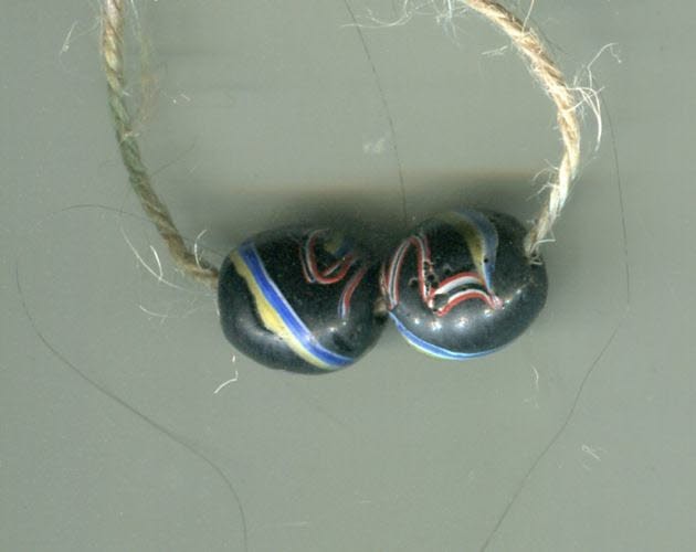 Rare Antique Kente Venetian Lampwork Banded Oval Fancy Glass African Trade Beads