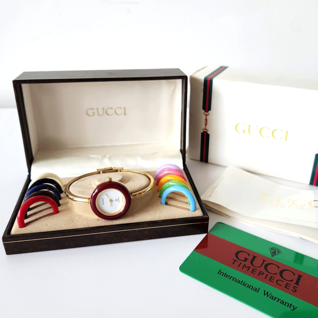 Rare Vintage Gucci Change Bezel 1100 Bangle Watch Quartz Gold Boxed Women