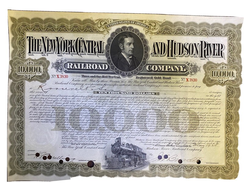 1924 Antique New York Central Railroad Vintage Gold Bond Train Stock Certificate