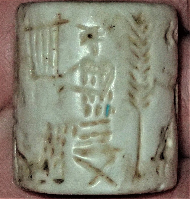 32mm Very Rare Ancient Akkadian White Stone Cylinder Seal Bead, 4000 YO, #S6051