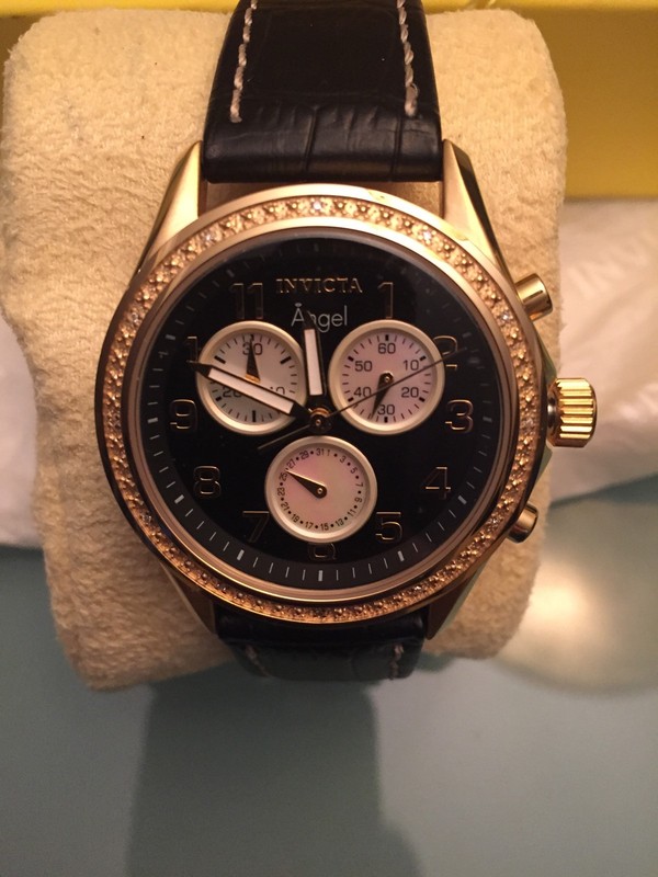 100% Auth Ladies Invicta Angel Chrono Watch Stainless Steel Leather Strap 0579