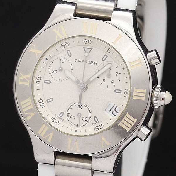 Cartier 2424 Chronoscaph 38mm White Dial Men Watch Box & Papers