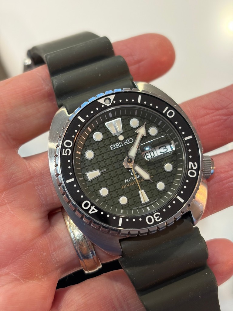 Seiko King Turtle Green Grenade Dial Srpe05 With Extra Crafter Blue Rubber Strap