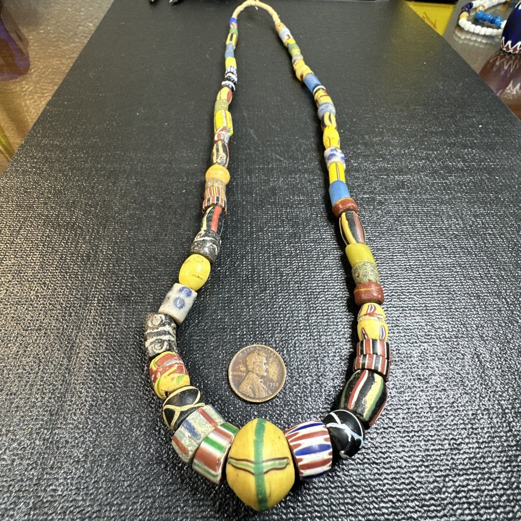 Antique African Trade Bead Necklace 24 Venetian Chevrons Yellow Cross Mix #3