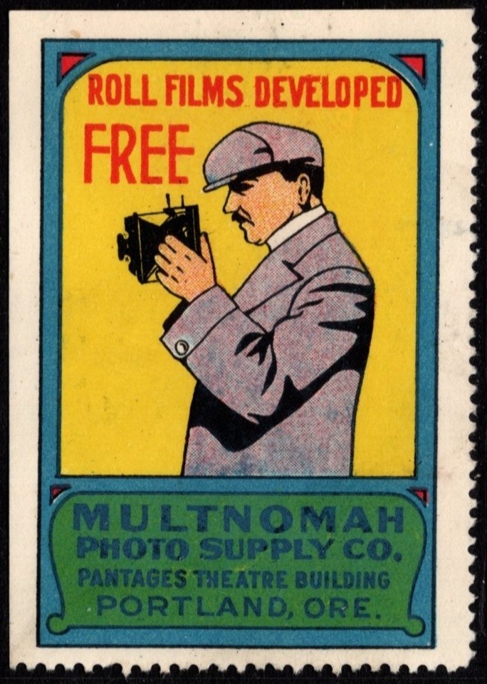 Vintage US Poster Stamp Roll Films Developed Free Multnomah Photo Supply Co.