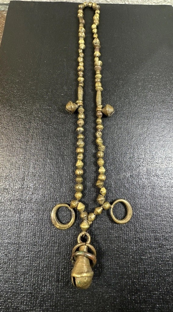 Amazing Strand of Antique Baule Brass Beads 32 With Bells Nice Patina Rare Find